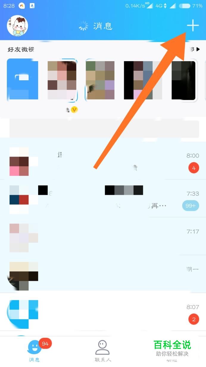 首先打开手机QQ,点击右上角,然后点击子菜单里面的“加好友”。