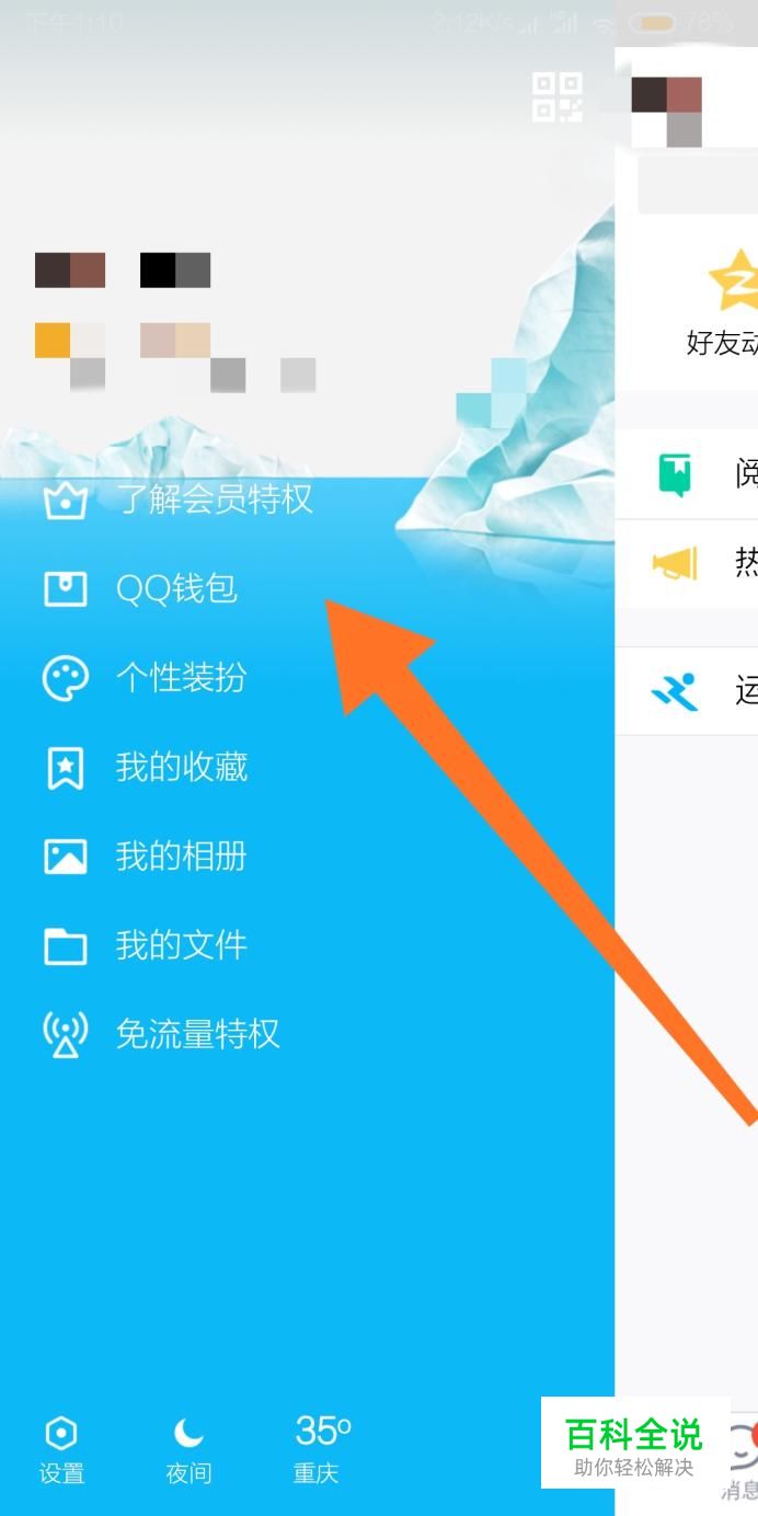 弹出菜单后,再点击进入“QQ钱包”选项。