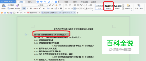 打开要设置目录的文档,选中要设置为一级标题的内容,然后点击上方工具栏中标题1.