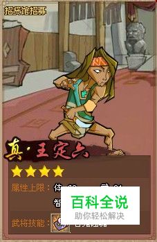 真王定六可以在招贤馆招募。属于法术型武将,技能百鬼蚀魂:【法】对单一敌方目标造成法术伤害,并一定几率使目标中毒,持续2回合。
