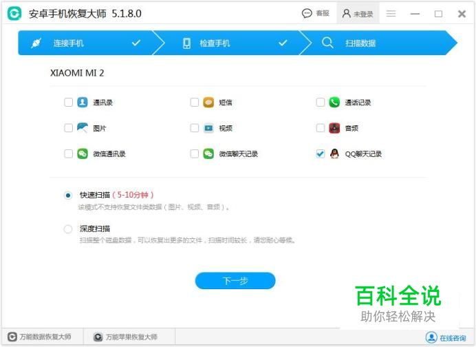 运行安装好的数据恢复软件,选择QQ聊天记录,点击下一步开始扫描。