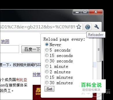 招式二. 插件篇 如果你不打算更换浏览器也有办法,试一试下面几款扩展插件吧。目前很多浏览器都支持插件扩展,但由于软件本身的不同,选择时还要和浏览器版本相互对应。 就拿平时最习以为常的IE来说,就可以通过一款名为“IE7 Pro”的小插件实现。别看名称叫做IE7 Pro,可实际上这款软件能同时应用在IE7和IE8上(IE9 RC版暂不支持)。 装好后,只要右击状态栏中的IE7 Pro图标,执行“刷新当前选项卡”,接下来再挑选一个刷新间隔就可以了。 同样作为时下最富前景的Chrome浏览器,也有对应的插件可选。比如这款名为Chrome Reloader的小插件,便是一个经典之作,安装好后它会自动出现在地址栏右侧,使用时只要点击插件按钮,挑选一个间隔时间即可。 稍后Chrome Reloader便会按照继定间隔自动刷新当前网页。
