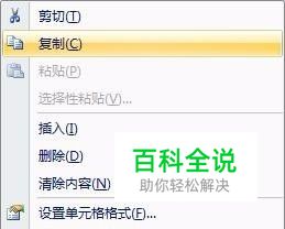 选中你所要处理的数据以后,鼠标右键点击选中的数据,在弹出的对话框中选择复制。