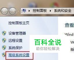 首先打开Win7控制面板,进入“系统和安全”,在左侧导航栏中打开“高级系统设置”。
