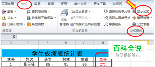 我们依次找到“公式”-〉“公式审核”-〉并点击“显示公式”: