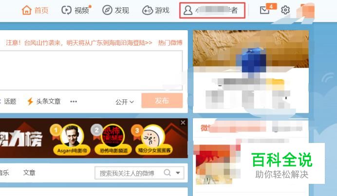 首先,我们用电脑上面的浏览器登录新浪微博,之后我们点击图示中的那个位置;