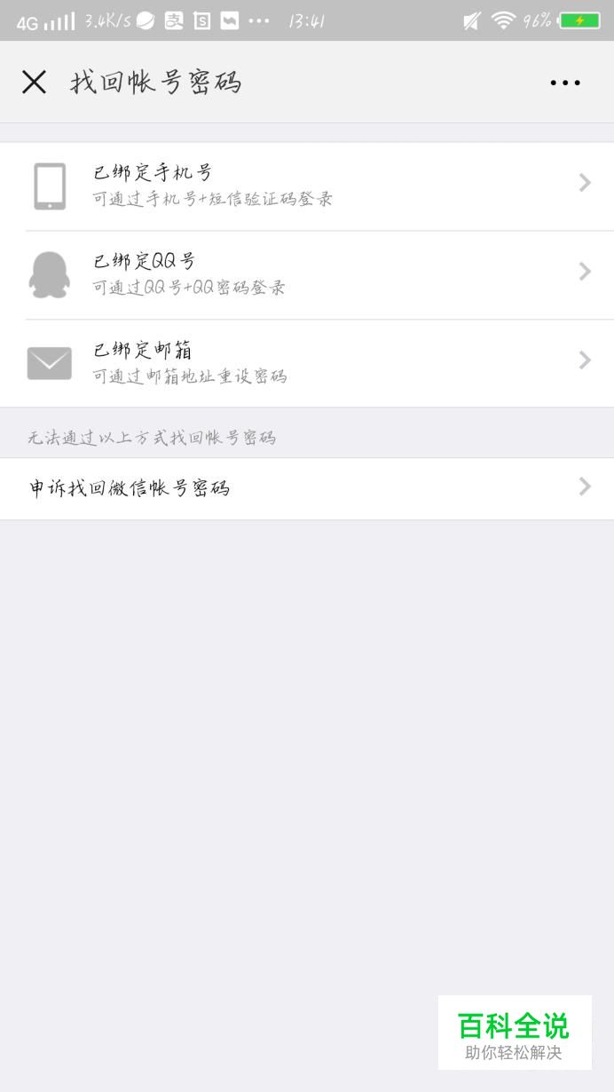 找回账号密码:如果你忘记了微信的账号密码,可以通过微信安全中心来找回。可以通过手机号,QQ号以及绑定的邮箱来找回密码。