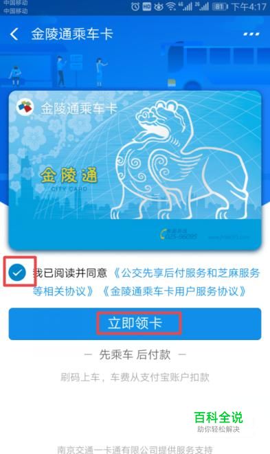 之后我们勾选上我已阅读并同意,然后我们点击立即领卡,之后我们进行授权,然后会弹出一个二维码,这样我们就申请好了。还是比较容易的,大家现在应该都会了。
