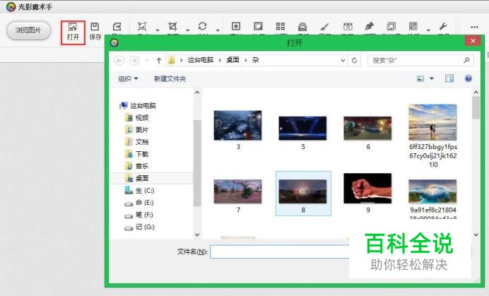 打开光影魔术手,点击打开,选择图片,打开