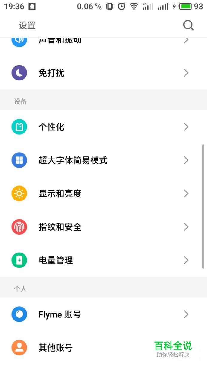 打开手机之后进入系统设置界面,在选项中点击“Flyme账号”