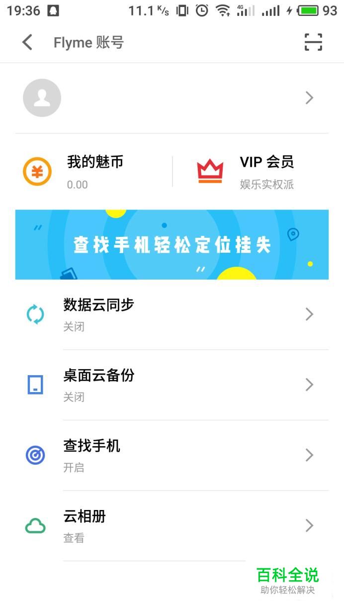 进入Flyme账号界面,在下方即可进行不同选项操作的云服务。
