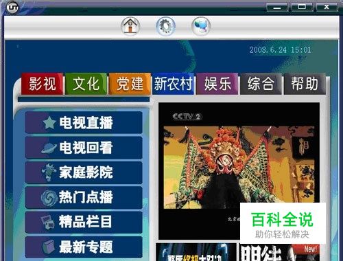 观看视频点播可以点击“家庭影院”、“精品栏目”、“热门点播”、“文化”、“党建”、“新农村”、“娱乐”等栏目进入我们为您提供的精彩视频节目。
