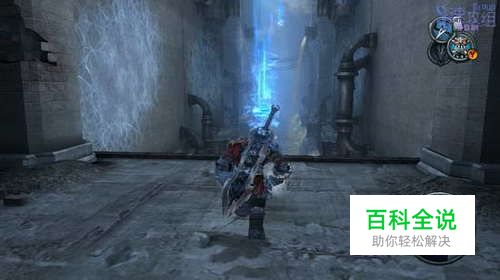 这里先利用光球飞上去,然后空中按RT用锁链荡秋千,最后落到网子上爬上去,后边的房间里干掉敌人后才能走,这条路之前走过一次了,不过上次去了其他地方,这次直接去解开封印的大门。