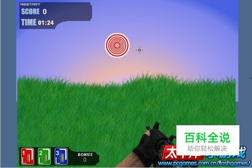 一共有三种色彩的靶子,你需要用同颜色的子弹才能把相对应的靶子击碎。数字键1,2,3切换不同颜色的子弹。