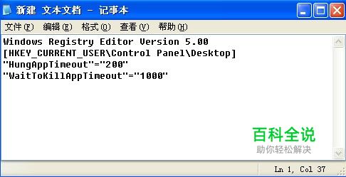将下列代码复制到文本文档中。 Windows Registry Editor Version 5.00 [HKEY_CURRENT_USER\Control Panel\Desktop] "HungAppTimeout"="200" "WaitToKillAppTimeout"="1000"