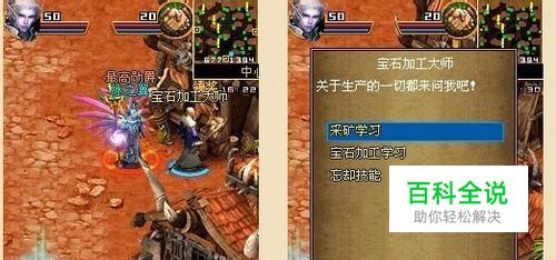 当玩家的角色到了10级,就可以在各自阵营的主城中心寻找NPC"宝石加工大师",按左软键进行对话,在弹出的面板中选择"采矿学习"。