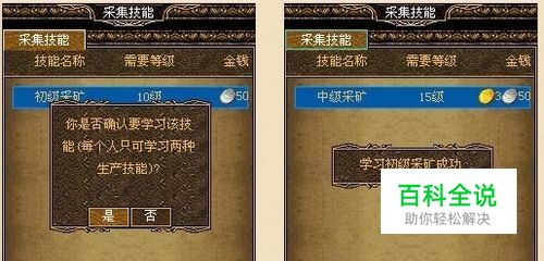 每个角色最多可以学习两种生产技能,学习成功后,系统会显示该技能下一等级的学习要求。
