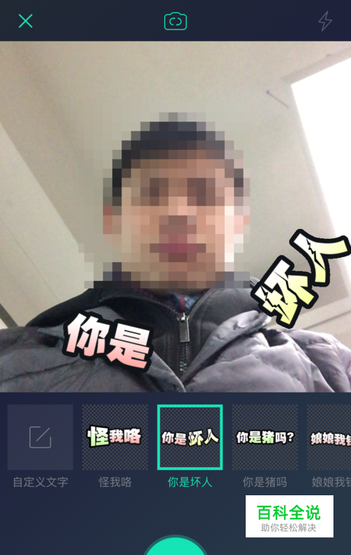 选择想要拍的表情标签,比如“你是坏人”再点击“拍照”按钮