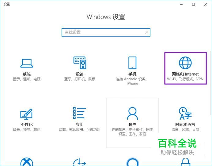 弹出的界面,我们点击网络和Internet;