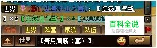 表情:有默认表情和VIP表情(VIP玩家专用)。 屏蔽:有时候不想看到某些频道的聊天内容,可以在此设置屏蔽频道。 大喇叭:暂未开放。 清屏:点击即可清理当前频道的聊天内容,还世界一个清静! 发送坐标:点击即可发送自己当前的坐标,非常快捷方便,其他人点击可以自动寻路到该坐标处。