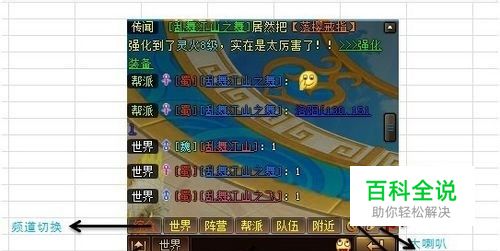 频道切换区域:有综合、世界、阵营、帮派、队伍、附近频道,切换可以查看各个频道的聊天内容以及参与聊天。