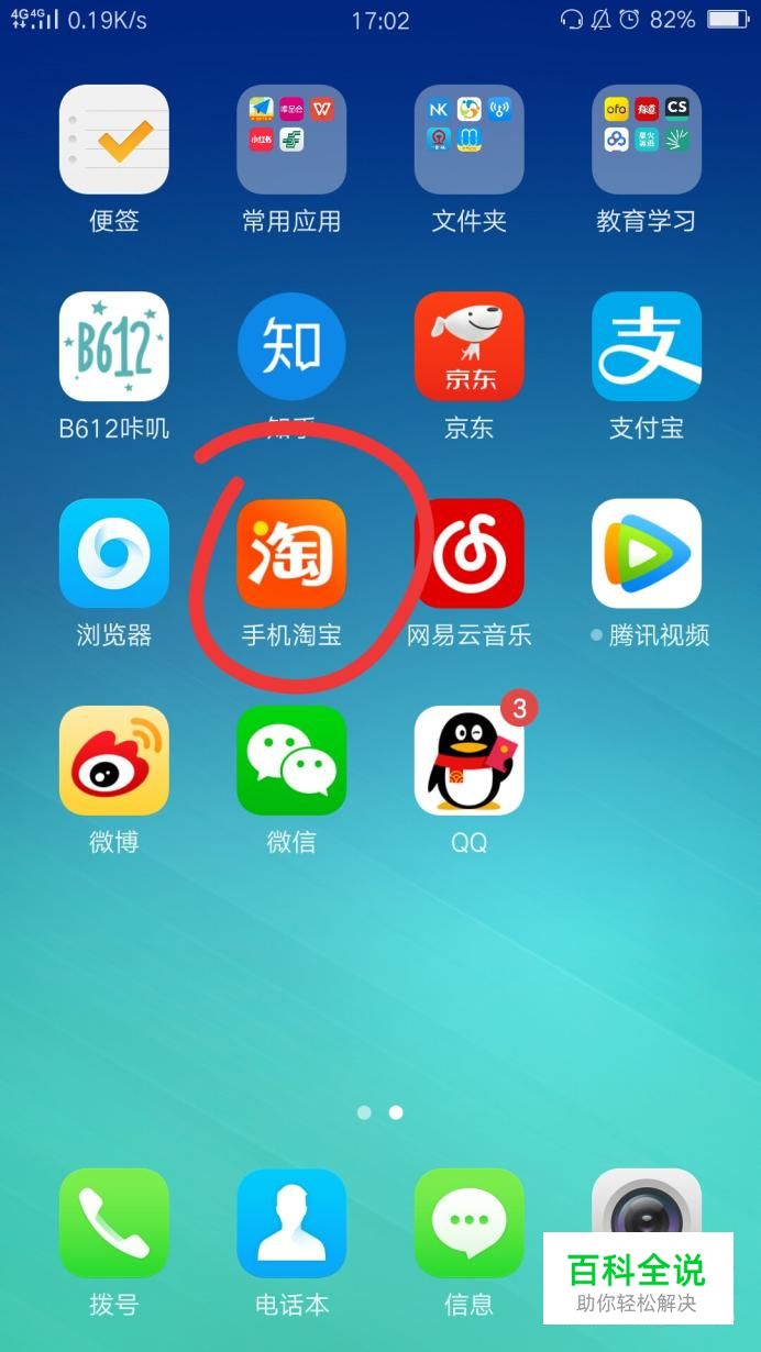 首先,打开手机,找到淘宝,点开。