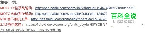 第一步 下载驱动,RSD官方刷机工具,并安装。 第二步 下载底包,放的是亚太,港版2.3.5原生底包SPYDERIRD_U.01.26.0_SPD-IRD-21_SIGN_ASIA_RETAIL_HKTW.xml.zip自带简体中文,繁体中文。 注意:行货不能刷水货底包。水货同样也不能刷行货底包。港版、亚太和欧版的底包是可以通刷的,下载底包时请看好说明。 第三步 手机进入刷机模式。方法:开机状态下,按住音量键下 再按住 电源键 保持不动。大概五秒左右就黑屏了。(这里会有2个功能,第一:如果所有按键松开的话会重启,也就是说的硬启动,可以用于玩游戏或者软件突然卡机,死机的情况。第二:松开电源键,音量键下不松 等个5秒左右就进入刷机模式。如图