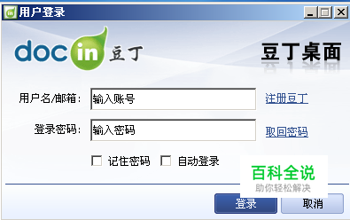 下载豆丁桌面客户端,安装完成后,运行豆丁桌面,在登录框中输入您在豆丁的账号和密码,点击登录。