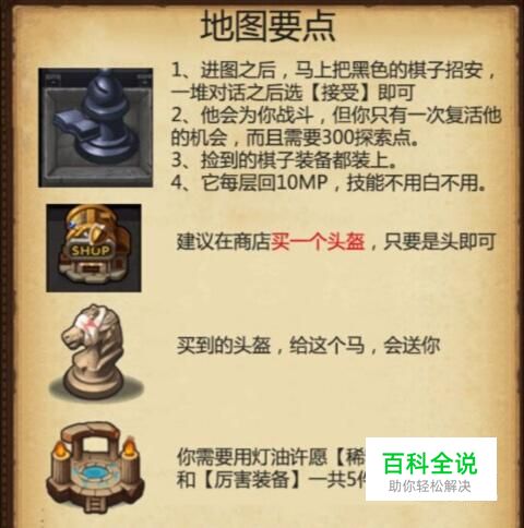 除了那个黑棋子之外,还要给受伤的抵抗军买一个头盔(进地图的时候送你的那匹马),然后还要用灯油许愿稀罕东西以及装备。