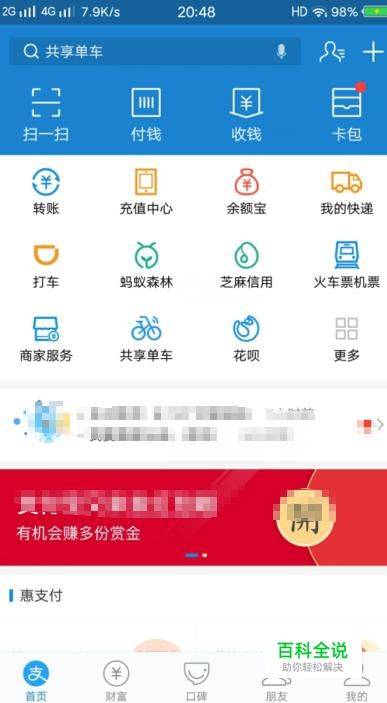 打开手机,找到支付宝,点击并进入支付宝首页,如图所示。