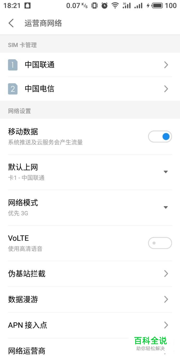 进入运营商网络设置界面,在网络设置中即可看到VoLTE选项。