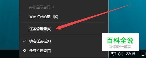 在Windows10系统桌面,右键点击桌面底部的任务栏的空白位置,然后在弹出菜单中选择“任务管理器”菜单项。