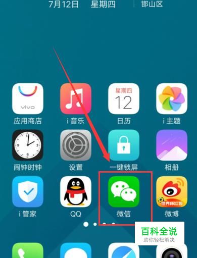 打开手机,找到手机微信,点击并进入,如图所示。