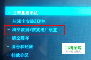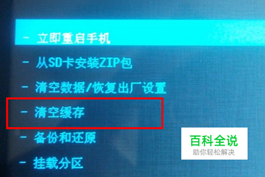 返回到recovery主界面,然后用音量键选择【清空缓存数据】,然后再选择【是的-清空所有缓存】然后按电源键确认