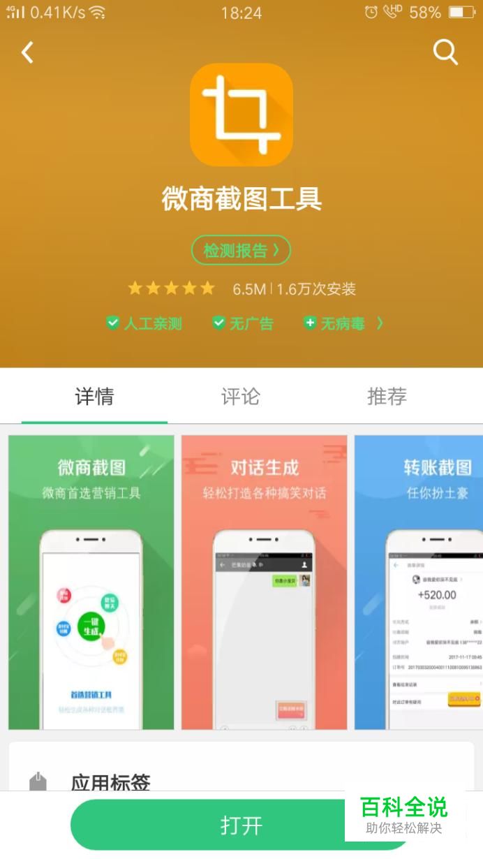 首先打开手机软件商店,搜索安装“微商截图工具”。