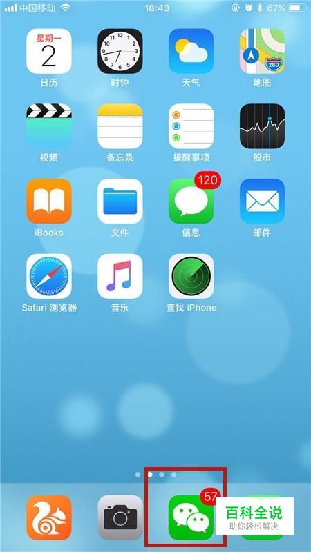 在我们的手机桌面上找到微信并点击它,如下图所示。