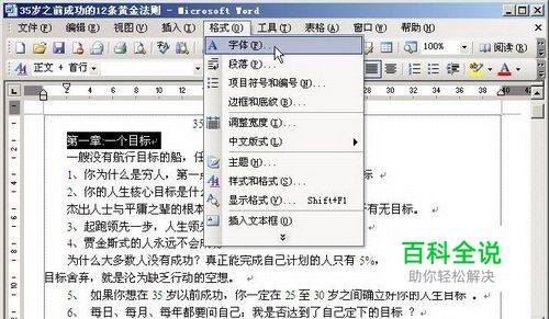 第1步,打开Word2003文档窗口,选中需要设置字符间距的文本。在菜单栏依次单击“格式”→“字体”菜单命令,如图2009111003所示。 图2009111003 选择“字体”菜单命令