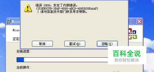 安装程序在安装此软件包时遇到一个错误,这可能表示此软件包有错。错误码是 2908 ,分享office安装时出现错误2908解决方法。