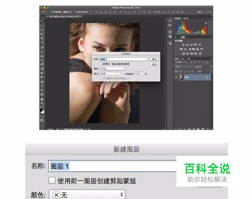 图例中人物的额头、面颊、肩膀处有很多细小的皮肤缺陷,看起来很多、很棘手,如果使用传统的仿制图章工具会耗时费力。此时我们需要做的工作如下。 步骤1 新建图层。