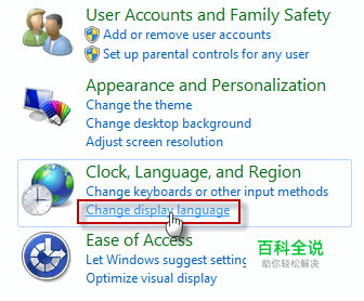 单击Clock, Language, and Region(时钟、语言和区域)下面的Change display language(更改显示语言)