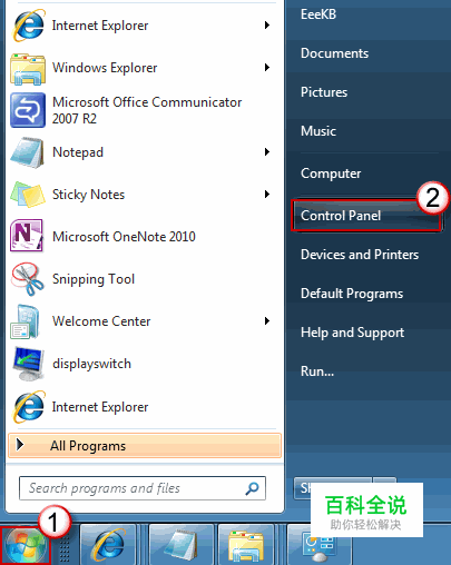 打开Start menu(开始菜单)并单击Control Panel(控制面板)打开它