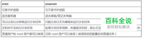 cron 和 anacron 主要的区别在于 cron 能在那些持续运行的机器上有效地运行,而 anacron 是针对那些会在一天内或者一周内会关机的机器。