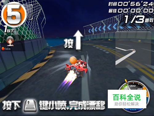 双 喷:↑→+Shift(最佳化飘移) ↑←[拉回车头(不喷,由于第一次飘移可以喷射一次,但是在这里不能喷] →+Shift(第一次飘完马上进入第二次飘移,记:这里的飘移不能点↑) ↑+←(由于第一次飘移,在这里的↑是喷射第一次飘移,而←是拉车头) ↑(喷射第二次飘移的)