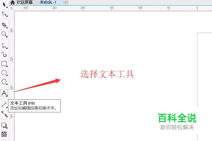 首先打开CDR软件,选择左侧的文本工具,如下图所示