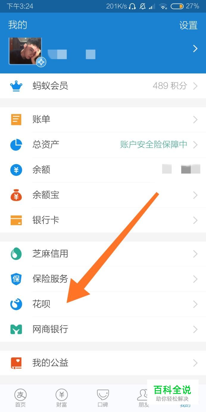 首先点击进入支付宝“我的”页面,再点击进入“花呗”选项。