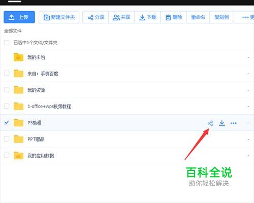 选择一个自己要分享的文件,在前面勾选,点击后面分享如下图所示;