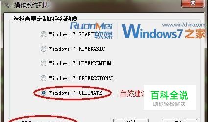 在跳出的版本选择提示框里,确认制作后的光盘镜像版本(建议勾选:Windows ULTIMATE)同时勾选确认“整合Service Pack”。