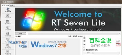 在“RT 7 Lite”的起始页面,点击“浏览”下拉菜单中的“Select ISO file”,加载并解压Windows 7光盘镜像到一个分区的文件夹。
