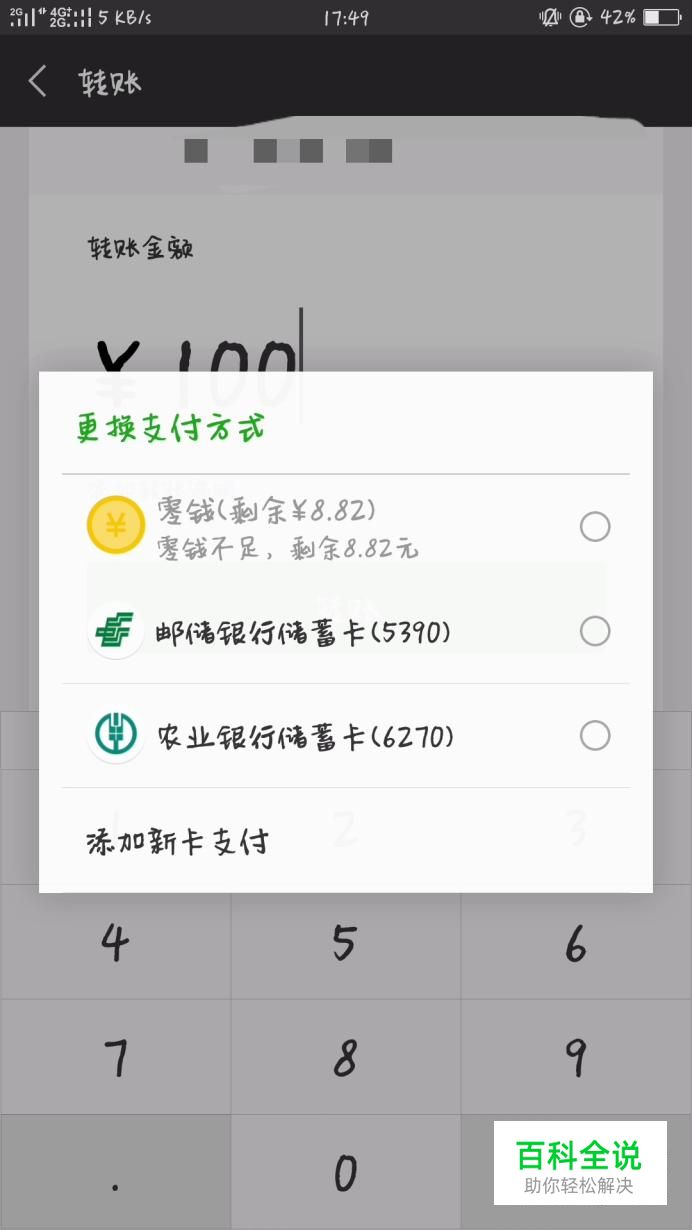 当微信余额里的金额不足以支付所需金额时,程序会选择其他的支付手段,例如银行卡。