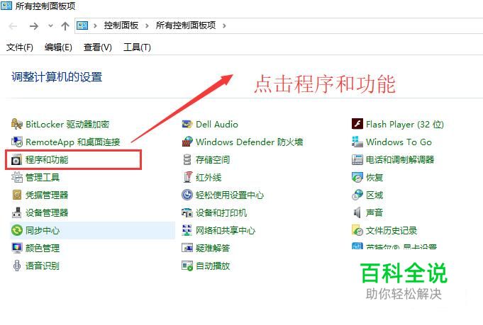 接下来会进入到控制面板界面,如下图所示,我们点击程序和功能选项